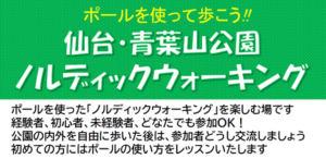 ポールを使った「ノルディックウォーキング」を楽しむ場です 経験者、初心者、未経験者、どなたでもお気軽にご参加ください ・参加費は無料 ・初めての方にはポールを使った歩き方をレッスンいたします ・体験希望の方はレンタルポー … 続きを読む 【2月開催】ポールを使って歩こう! 青葉山公園ノルディックウォーキング